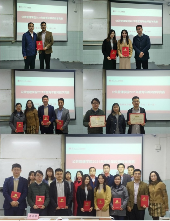 比赛结束后,评委针对教师课堂讲授情况做了细致讨论和评价,并现场评选出一等奖1名、二等奖2名、三等奖3名、优秀奖2名,唐良敬书记、陈荣卓院长、周学荣和王美文教授分别向获得一、二、三等奖和优秀奖的教师颁发证书。