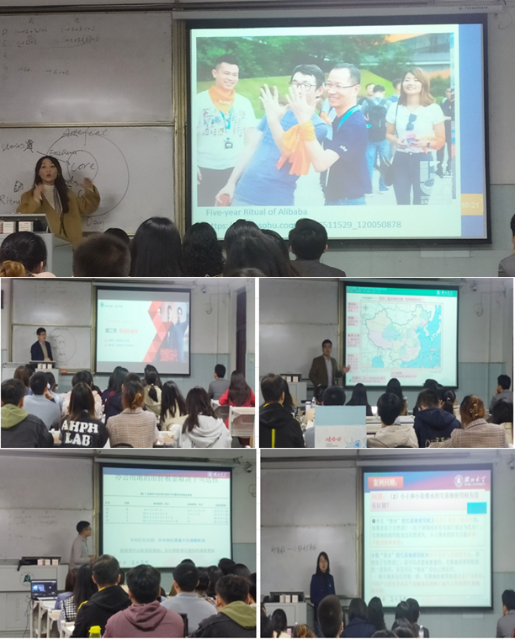 教学竞赛由知识回顾、课程导入、主体部分、总结回顾和布置作业等五个部分组成。竞赛过程中,参赛教师能紧扣教学目标与重点难点,熟练使用多种教学手段和方法,并将课程知识和生活实际、案例分析和重点难点有机结合,教学内容合理紧凑、环环相扣、循序渐进。参赛过程中,教师们精神饱满,亲和力、感染力强,教师们与学生频繁交流互动,使用图片、热播剧、视频和故事等方式作为课堂导入内容,利用相关领域的热点话题启发学生思考,课堂氛围活跃。