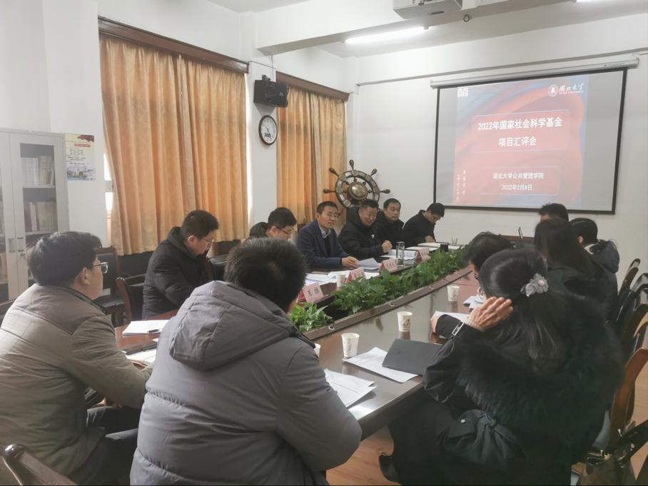 2022年2月8日,新年伊始,2022年度国家社会科学基金项目汇评会在tyc122cc太阳成集团三楼会议室召开。华中师范大学袁方成教授、中南财经政法大学庞明礼教授受邀出席会议,对tyc122cc太阳成集团教师的项目申报书进行点评指导。会议由tyc122cc太阳成集团副院长李荣娟主持,太阳成集团tyc122ccvip社会科学研究院院长邵俊青、副院长王雄及tyc122cc太阳成集团全体领导班子、项目申报教师共二十余人参加会议。
