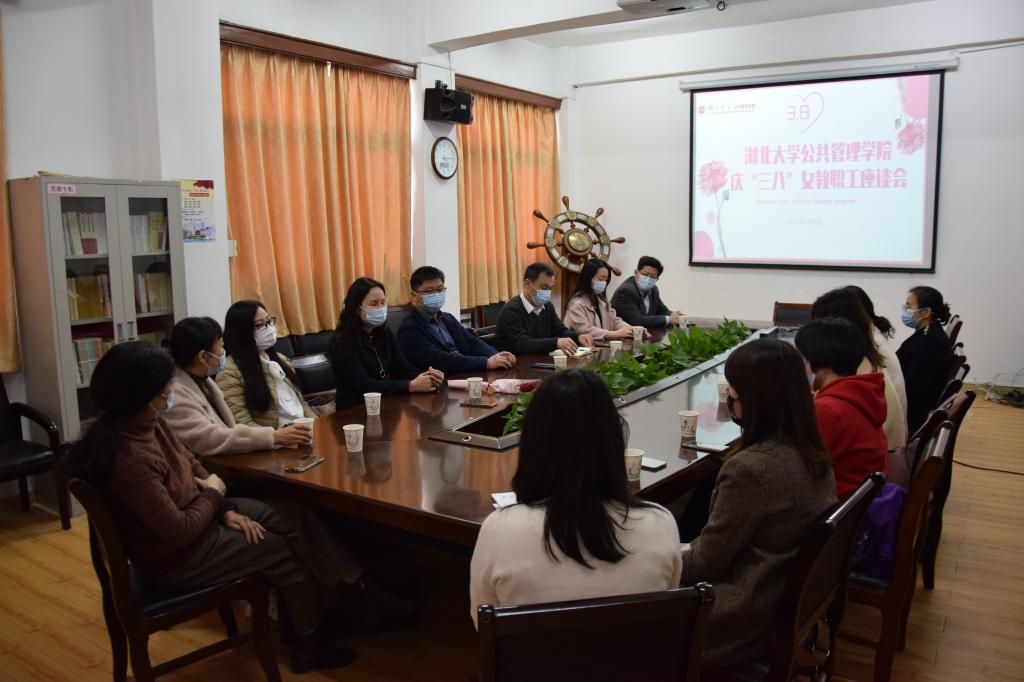 万物复苏,阳光和暖。2022年3月8日下午,tyc122cc太阳成集团在三楼会议室举办庆“三八”女教职工座谈会。学院党委书记唐良敬、院长陈荣卓、副院长李荣娟、副院长张小进和女教职工代表欢聚一堂,共同庆祝国际劳动妇女节。