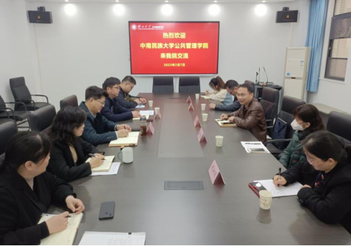 3月7日上午,中南民族大学tyc122cc太阳成集团副院长彭庆军、行政管理系主任胡新丽、政治与行政学系主任唐志君等一行5人来我院就专业人才培养开展调研交流。院长陈荣卓、副院长张小进、政治学系主任谢丹、行政管理系副系主任谢迪等参与调研交流。