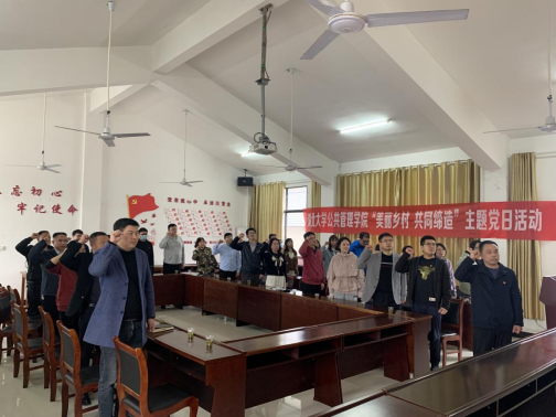 会上,学院党委书记唐良敬带领全体党员重温入党誓词。大屋冲村支部书记余亚洲介绍了村基本情况及近年来的发展变化。驻村工作队队长周厚洪介绍了产业帮扶、文化帮扶、志愿帮扶等方面的具体举措及工作成效。王美文、张传烈等教师党员围绕产业兴农、生态宜居、乡风文明等作交流发言,为大屋冲村下一步建设发展建言献策。
