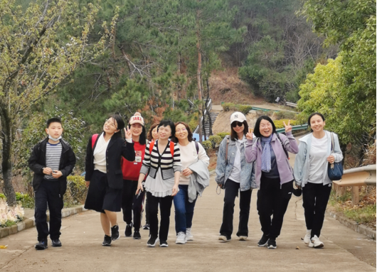 雨后初晴、微风徐徐,老师们呼吸着清新空气,享受亲近自然的静谧和乐趣。一边漫步林间栈道、欣赏花海美景,一边亲切交谈、嘘寒问暖;时而你追我赶,时而驻足合影。春游往返途中,老师们一路欢歌笑语。