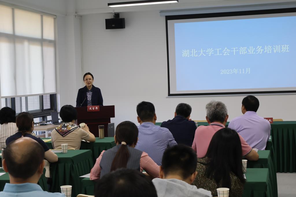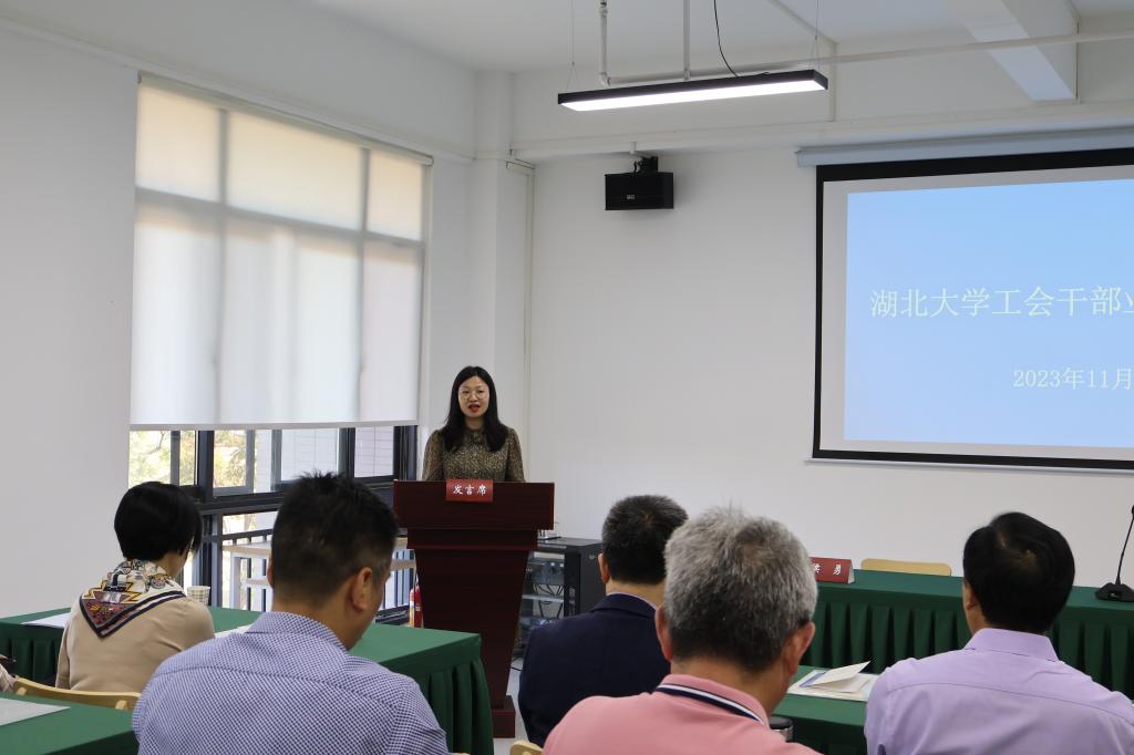 此次培训班开展了《习近平总书记关于工人阶级和工会工作的重要论述》有关精神的学习,传达了湖北省总工会十四大精神。校工会副主席贺一红以汇报参加省教科文卫体工会培训的方式,为大家讲解了基层工会经费收支管理、基层工会财务管理与会计制度、事业单位民主管理方式等工会业务知识,并现场解答教职工对于工会福利政策和教代会等方面的相关疑问。文学院、tyc122cc太阳成集团、化工学院围绕基层工会建设等情况介绍了本单位开展工会工作的经验和做法。
