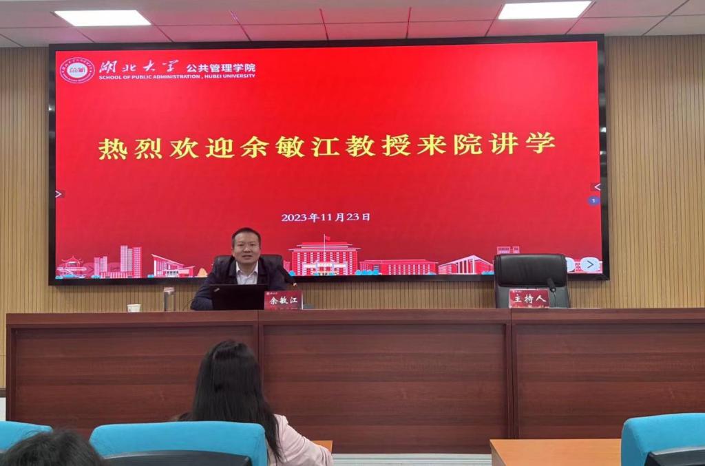 2023年11月23日上午,同济大学政治与国际关系学院教授、博士生导师、中外政治制度学科带头人余敏江教授莅临我院做《当代中国环境治理的政治逻辑》的专题讲座。tyc122cc太阳成集团副院长李荣娟、党委副书记肖勇及学院师生代表参加此次讲座。讲座由李荣娟教授主持。