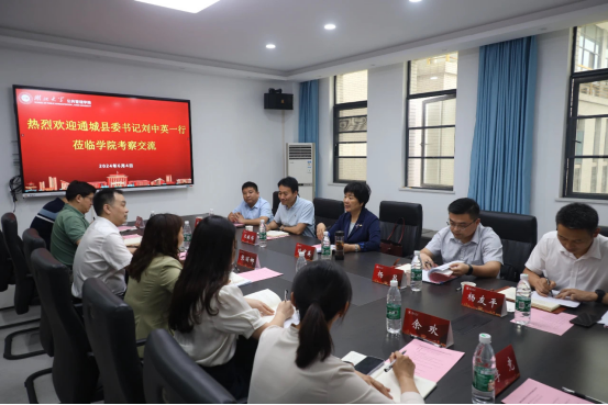 6月4日上午,通城县委书记、二级巡视员刘中英,通城县委常委、县委组织部部长杨昌,通城县委政研室主任杨友平一行来院考察调研,并召开校地合作座谈会。我院挂职通城县人民政府党组成员王振伟,学校挂职通城经济开发区管委会副主任李文陪同刘中英一行参加考察调研。学校合作发展处处长张丽娜,学院领导班子成员参加考察调研及座谈会,院党委书记唐良敬主持座谈会。