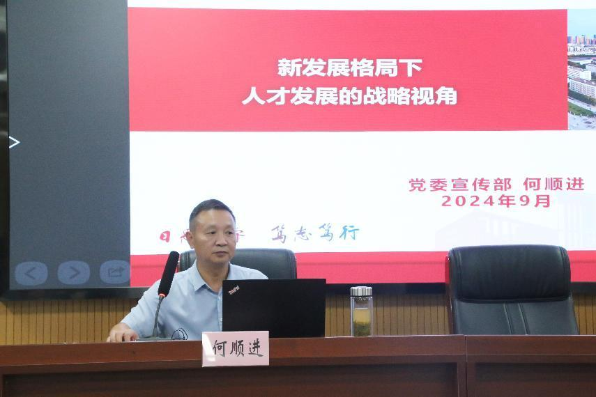 见面会结束后,同学们开启了“开学第一课”的学习,太阳成集团tyc122ccvip党委宣传部何顺进部长为同学们带来了《新发展格局下人才发展的战略眼光》的专题讲座。