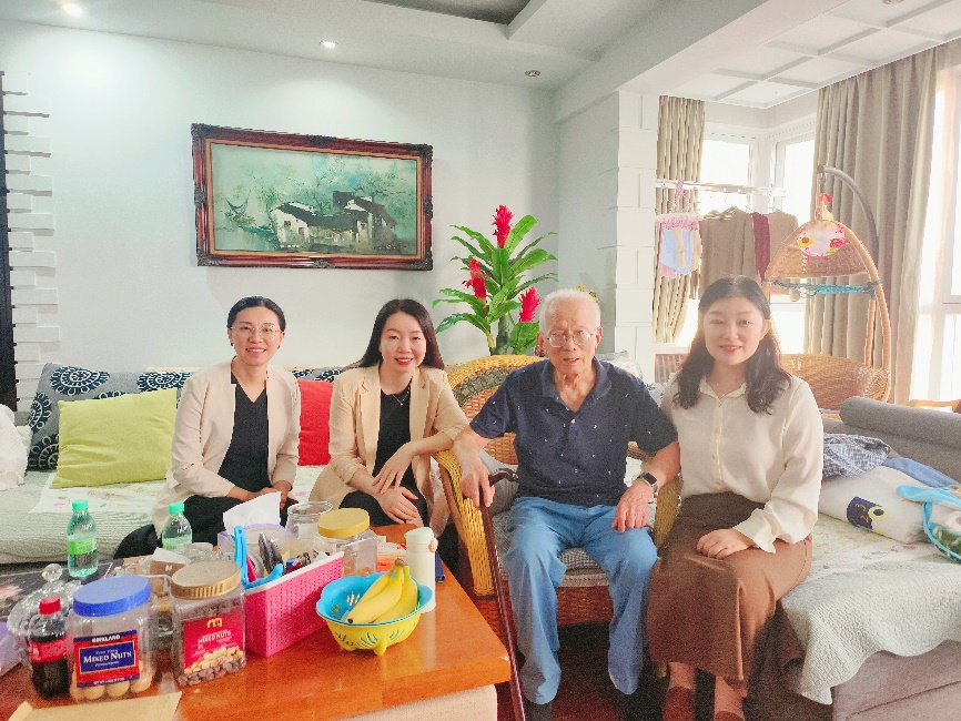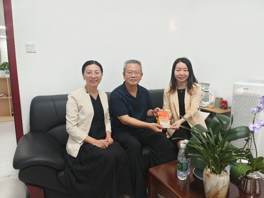 重阳节当日,院长李荣娟、院党委副书记余欢、院办主任李竞慰问了饶士奇、吴克明等退休老教师,为他们送上慰问品和节日祝福,亲切询问他们的健康和生活情况,并介绍学院建设发展近况,听取他们的意见建议。