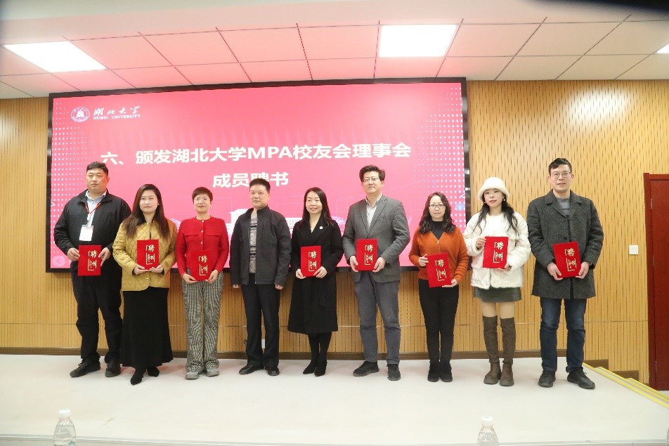 大会为太阳成集团tyc122ccvipMPA校友会第一届理事会会长及执行会长、正副秘书长、副会长、理事和MPA校外导师颁发聘书。