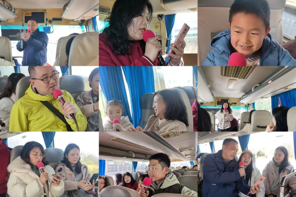 上午9时,大巴车满载欢声笑语启程。行车途中,车厢化身“流动舞台”,教师与孩子们共同献上精彩表演,展现教学团队活力与亲子温情。唐良敬书记以一首《壮志在我胸》拉开活动的序幕,瞬间激起教师们的热情。行政管理系方伶俐老师5岁的女儿以一支《你笑起来真好看》歌曲,惊艳全场,稚嫩却灵动的声音赢得阵阵掌声。一个半小时的车程,老师们以轻快形式呈现,形成流动的春日音乐图鉴,一路欢歌笑语,原本枯燥的车程化作才艺与智慧的流动课堂。
