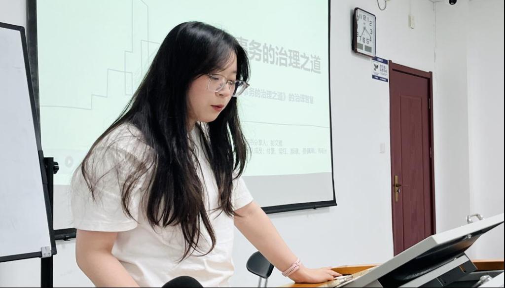 杨莹莹同学首先代表小组分享了曼瑟·奥尔森《集体行动的困境》的核心观点,通过“三个和尚没水喝”的生动比喻,阐释了理性人假设下“搭便车”行为如何导致集体行动失败。小组成员结合“河长制”“社区门前三包”等案例,剖析了选择性激励、规模效应与制度约束在破解治理难题中的作用,提出“数字技术赋能监督”“情感治理激活内生动力”等创新思路。