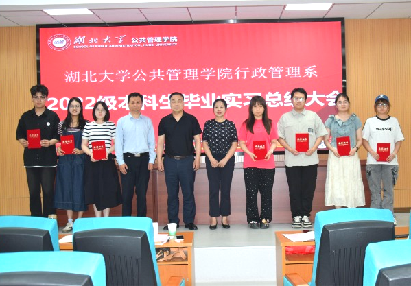 4月30日下午15:30,行政管理系在逸夫楼C座518报告厅召开2022级本科生毕业实习总结大会。实习单位负责人武昌区人大徐家棚街工委主任李丰、杨园街道党政办主任朱莉,学院党委书记唐良敬、党委副书记余欢、副院长张小进、系主任谢迪、系副主任陈娟、系副主任华汛子、实习指导老师及2022级行政管理专业全体学生参加本次大会。大会由系主任谢迪主持。