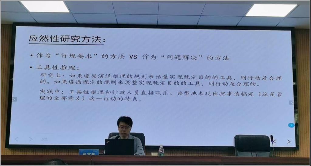 张雪帆副教授从行政伦理应然性研究的意义和方法入题,强调选择核心研究概念的重要性,系统性地展示行政伦理研究的知识层次和应用方法,同时对行政伦理研究的实战要领进行细致入微地讲解。讲座全面涵盖了方法论、案例分析与研究技巧,为我院师生带来了一场兼具理论分析和实践运用的学术盛宴。