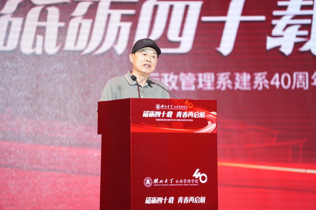 学院教师代表孙友祥教授讲述了行政管理系从单一的“系”成长为新文科学院的发展历程。作为与行政管理系同成长、共发展40年的参与者、见证者和受益者,他特别感谢学校领导和专家学者对学院发展的大力支持,对学院一代代师生接续奋斗的担当精神和广大院友取得的杰出成就深感自豪。他深情期望广大毕业生将个人发展融入国家发展大局,在地方治理、乡村振兴等广阔舞台上贡献公管人的智慧和力量。