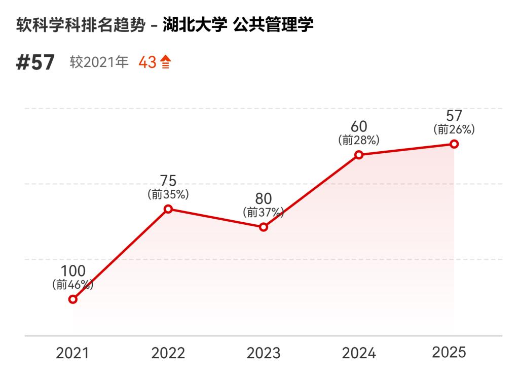 近日,高等教育评价专业机构软科正式发布“2025软科中国最好学科排名”,我院公共管理学学科稳步攀升至第57名,进入全国前26%,较2024年提升3位,较2021年提升43位,位列湖北省省属高校第一、全省第七位。