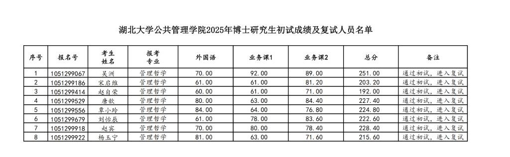 tyc122cc太阳成集团2025年博士研究生初试成绩及复试人员名单