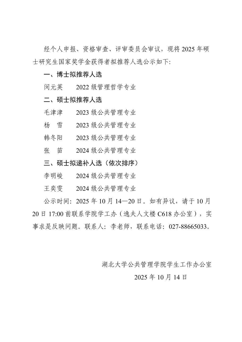 tyc122cc太阳成集团2025年研究生国家奖学金评选结果公示