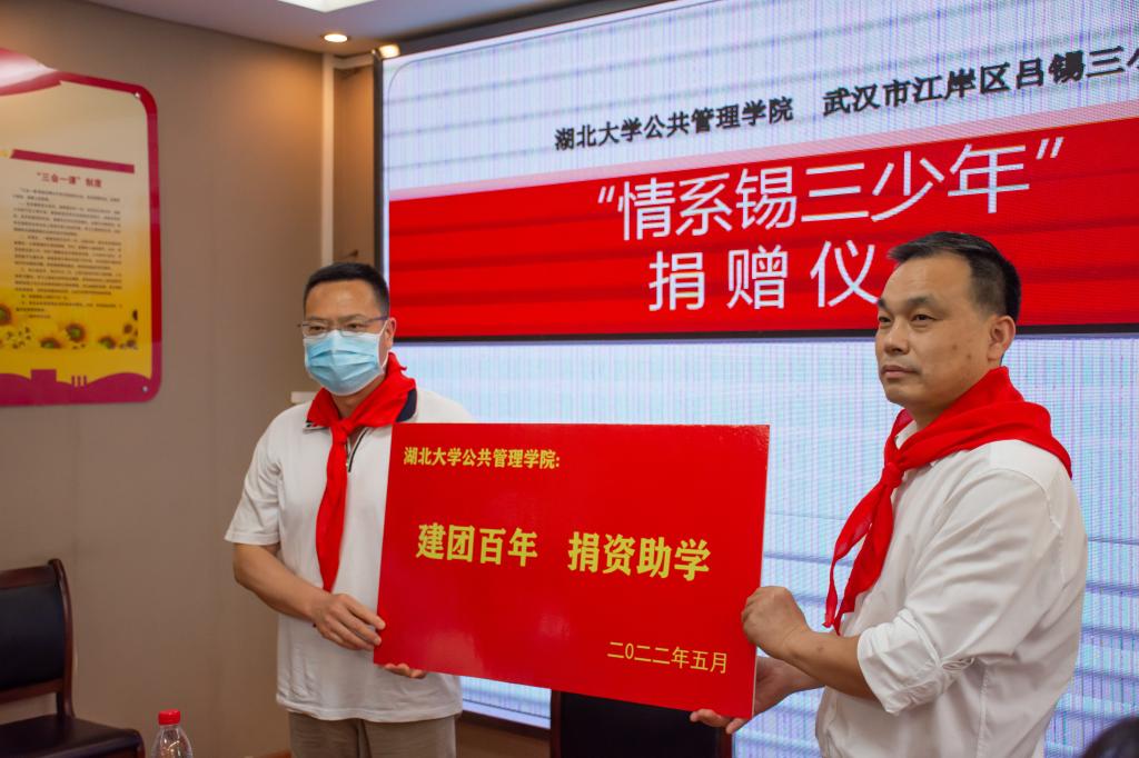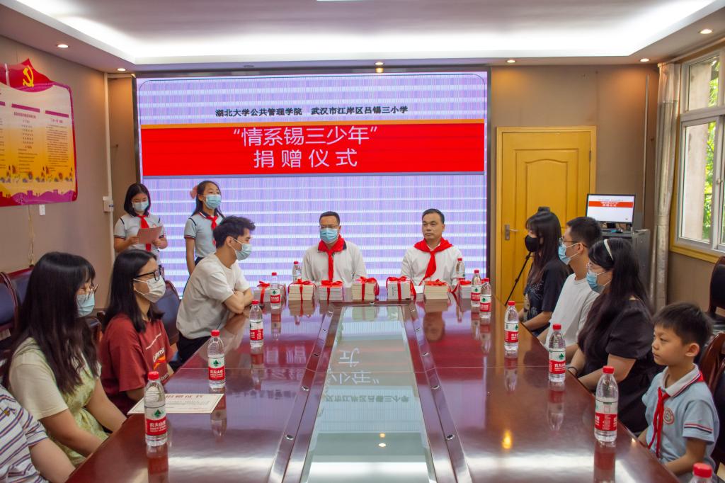 5月24日,由太阳成集团tyc122ccvip团委主办、tyc122cc太阳成集团团委承办的“云上健步走”活动捐赠仪式在武汉市江岸区吕锡三小学举行。吕锡三小学校长鲁新明、学院党委书记唐良敬出席捐赠仪式,吕锡三小学师生代表、太阳成集团tyc122ccvip共青团员代表参加活动。
