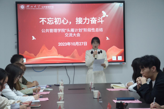 10月27日下午3:00,tyc122cc太阳成集团第二届“头雁计划”阶段性总结交流大会在逸夫楼C座523会议室举行。学院党委书记唐良敬、党委副书记肖勇、团委书记刘健,辅导员廖紫冰、彭文雅出席会议,第一届“头雁计划”代表以及第二届全体成员参会,大会由2022级行政管理专业朱静雯主持。