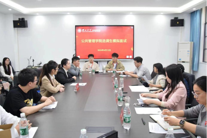 为助力我院选调备考生全力备战选拔面试,4月12日下午,学院特开展2024年选调生模拟面试训练,活动邀请了学院多位资深老师担任评委。