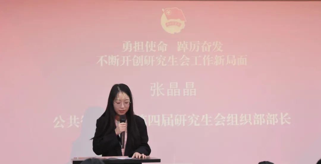 会议开始,第四届主席团代表张晶晶分享了自己一年来的工作心得,并鼓励同学们在工作中要保持乐观进取的心态,勇于面对和解决问题,积极投身到研究生会的各项工作,为团队注入更多的活力和创意;第五届研究生会主席史延超汇报了今后的工作计划和目标,并表示将在未来的工作中加强学习,不断探索工作新模式和新方法,提升服务意识,深入班级,用心用情为研究生做实事。