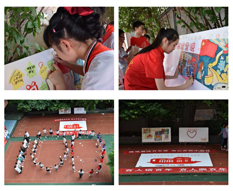 5月31日,tyc122cc太阳成集团“小白杨”志愿服务队走进武汉市吕锡三小学,开展以“百人话百年,百人画百年”为主题的公益活动。吕锡三小学校长鲁新明、书记张帆,“小白杨”志愿服务队全体成员和吕锡三小学的小朋友们参加活动。