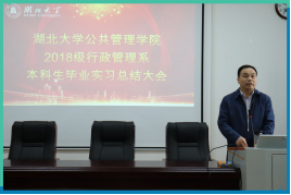 最后,学院党委书记唐良敬对本次大会进行了总结发言。唐书记首先代表学院向参与本届实习工作的全体师生表示诚挚的感谢。同时,他寄语2018级行政管理系全体本科生要认真总结此次实习经历,将收获的经验转变成前行的动力和人生的财富;对实习中暴露的不足要虚心接受,查漏补缺,努力在新的起点上,创造美好的未来!