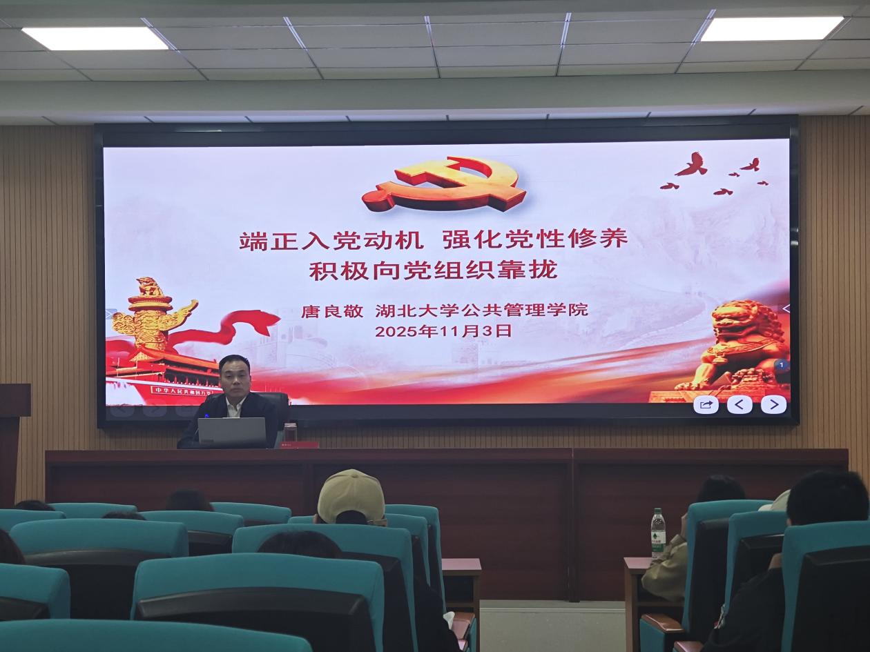 在第二阶段的辅导报告环节中,唐良敬书记以深刻的理论阐释、鲜活的实践案例,为学员们系统梳理了如何端正入党动机,强化党性修养。他着重强调,青年大学生要在理论学习中强化政治意识、提升理论素养、增强时代责任感,自觉把个人理想融入国家发展大局,在服务人民、奉献社会的生动实践中绽放青春光彩。整场报告内涵丰富、思想深邃、催人奋进,赢得了学员们的阵阵热烈掌声。
