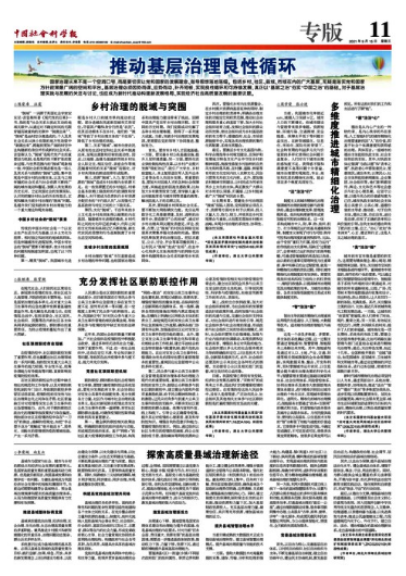 9月15日,我院科研团队在《中国社会科学报》第2252期刊发了四篇关于“推动基层治理良性循环”的专题文章,并在中国社会科学网上同步推介。