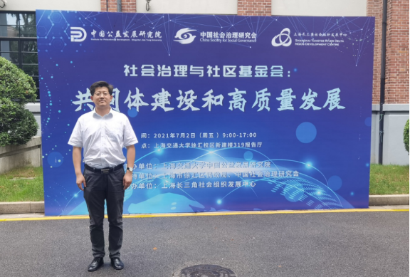 7月2日,由上海交通大学中国公益发展研究院主办的“社会治理与社区基金会:共同体建设和高质量发展”主题研讨会在上海交通大学举行,来自北京大学、中国人民大学、中国社会科学院、南京大学、浙江大学等知名高校和科研院所的学者以及民政部、国务院发展研究中心、中国社会治理研究会、上海市民政局、深圳国际公益学院、上海映绿公益事业发展中心、深圳市蛇口社区基金会、上海仁德基金会、成都市武侯社区发展基金会、杭州市余杭区良渚文化村社区公益基金会等单位的实务专家和高级管理人员参加了此次会议,我院张小进副教授应邀参会。