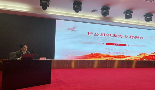 12月8日上午,应湖北省民政厅、湖北省社会组织总会邀请,我院副院长张小进副教授在湖北省郧西县为湖北省第二期社区社会组织能力提升暨社会组织助力乡村振兴示范培训班授课,授课主题为“社会组织助力乡村振兴”。