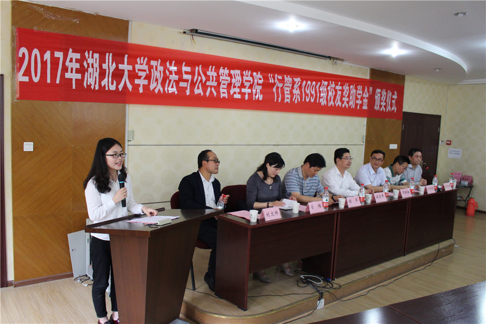随后,郑全新书记宣布获奖学生名单,戴红利等15名同学获得“行管系1991级校友奖助学金”。